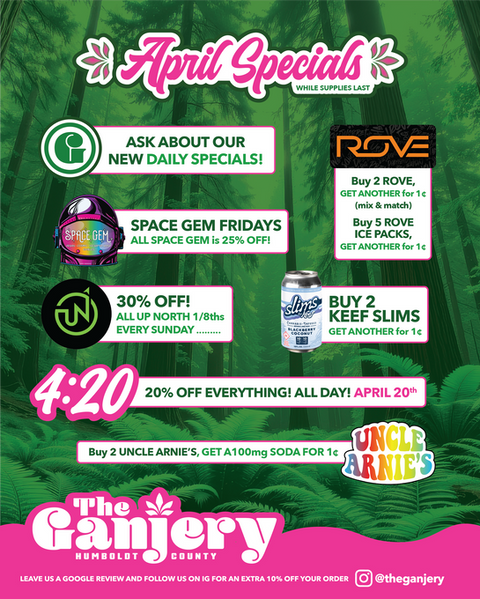 At The Ganjery, we pride ourselves on being a premier cannabis dispensary, serving the communities of Arcata and McKinleyville. Our knowledgeable cannsultants offer expert guidance to help you navigate our curated selection of high-quality products sourced locally from Humboldt County and across California. We are dedicated to fostering education and community engagement, ensuring every customer enjoys a great experience.